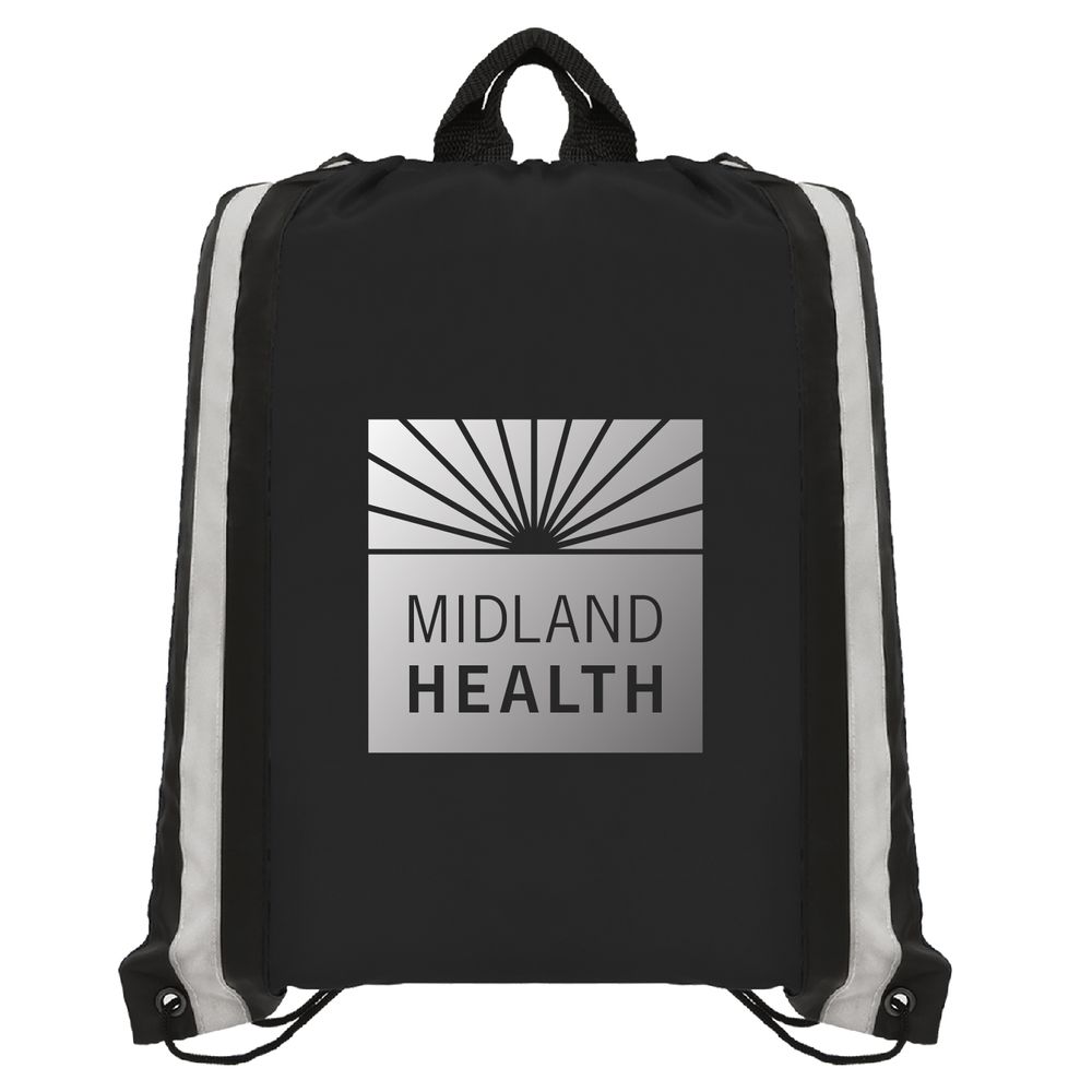 Now with metallic silkscreen imprint, the durable and versatile Klondike drawstring backpack features two prominent reflective safety strips to help stay visible at night. This backpack also has a convenient carrying loop at top. This item packs flat for easy storage, and makes a great item for sporting events, tradeshow events, school activities—and so much more! Measuring 12.87" W x 15.71" H.